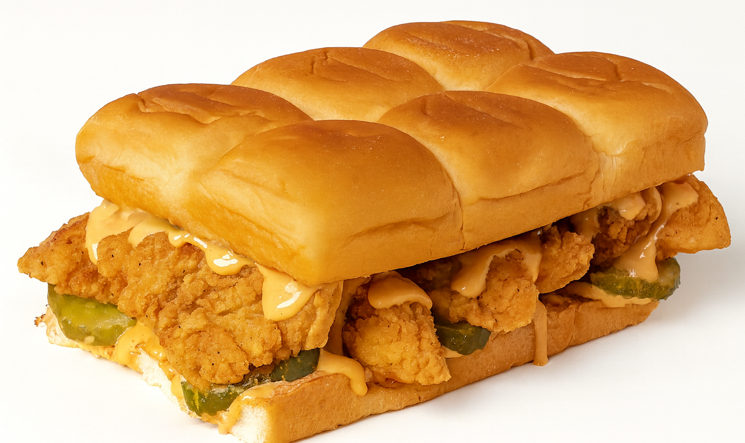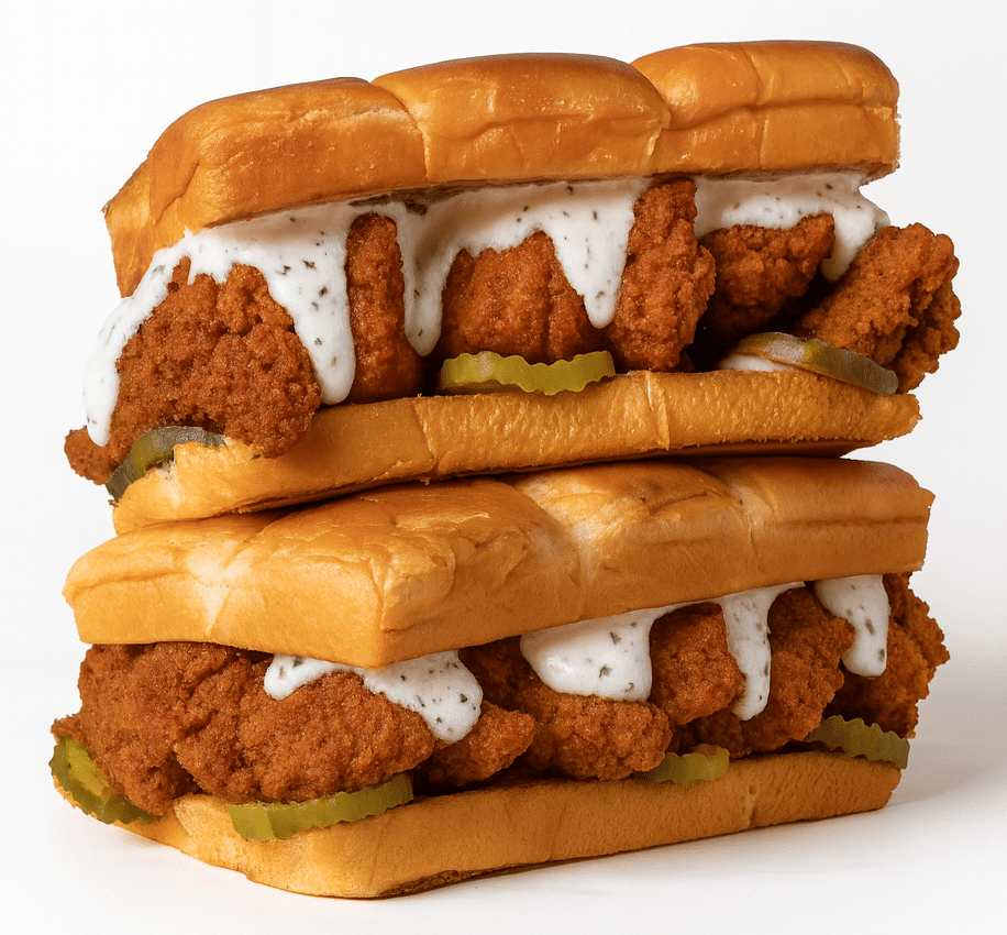 View Item: 24×24 Chick’n View Item: 24×24 Chick’nCrispy chick’n strips, pickles, and secret sauce slayed between 24 toasted King’s Hawaiian® sweet rolls. Leave no crumbs…